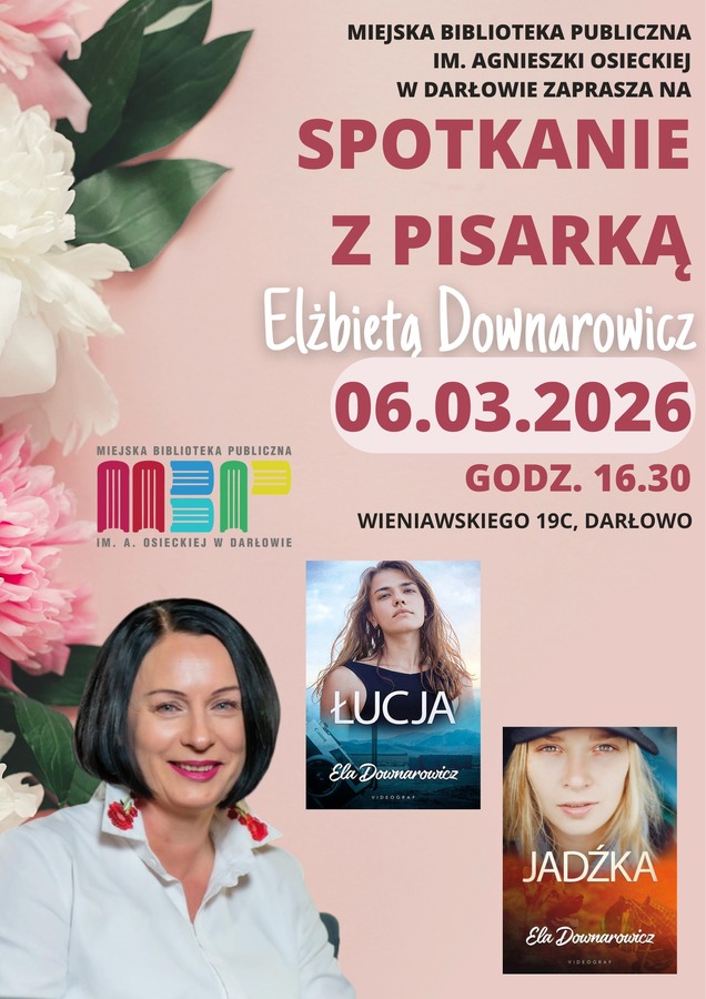 W naszej bibliotece gościć będziemy Elżbietę Downarowicz – autorkę poruszających powieści o kobietach, które muszą zmierzyć się z traumą, niesprawiedliwością i własnymi lękami, by odzyskać godność i sprawczość. Bohaterki jej książek pokazują, że nawet po najtrudniejszych doświadczeniach można stanąć na nogi, zawalczyć o prawdę i o siebie.